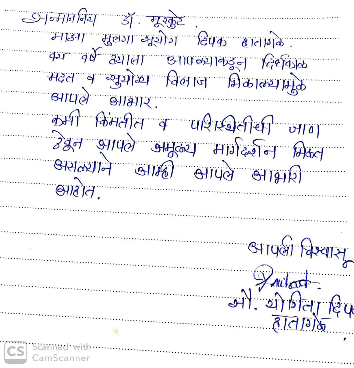 Dr. Amol Shivaji Murkute comes from a modest middle-class family, hailing from Sinnar (Nashik). He completed his schooling in Sinnar and stood first in the region in SSC exams. He excelled in 12th std in Nashik and ranked 22nd in state HSC board. After securing the 57th state Rank in MH CET, he got admission to India's most prestigious Seth G.S. Medical College and KEM hospital for MBBS.